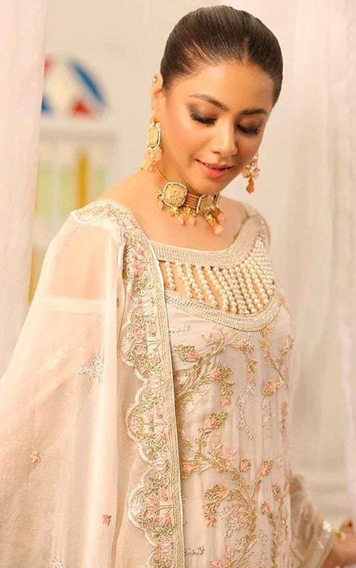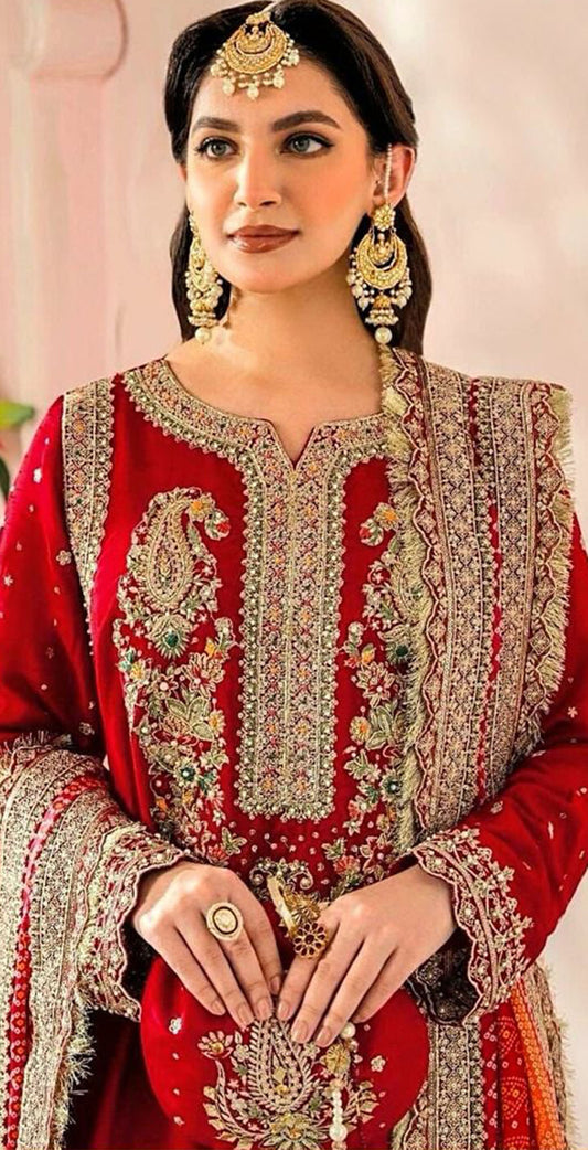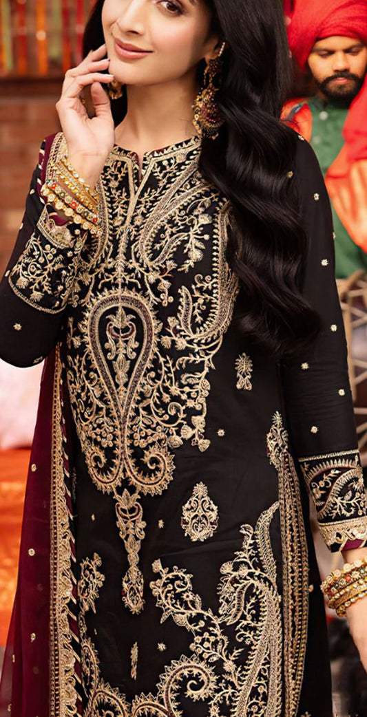 Women chinon silk embroidered and hand work and fully stitched sharara set