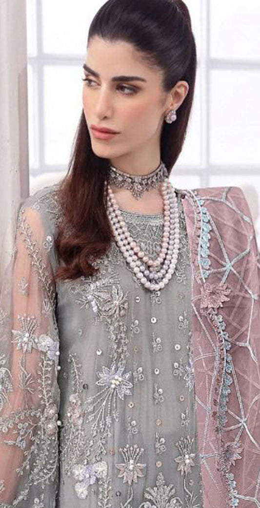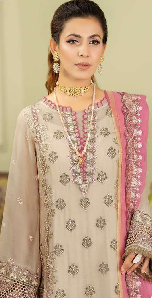 Salmon pink georgette embroidered and fully stitched gown with dupatta