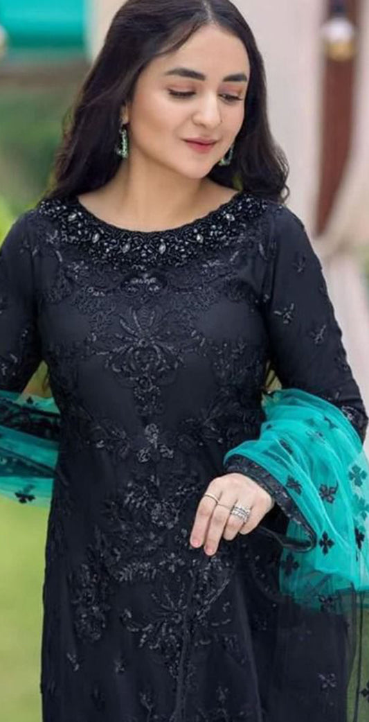 Emerald green georgette embroidered and fully stitched salwar set Hiral