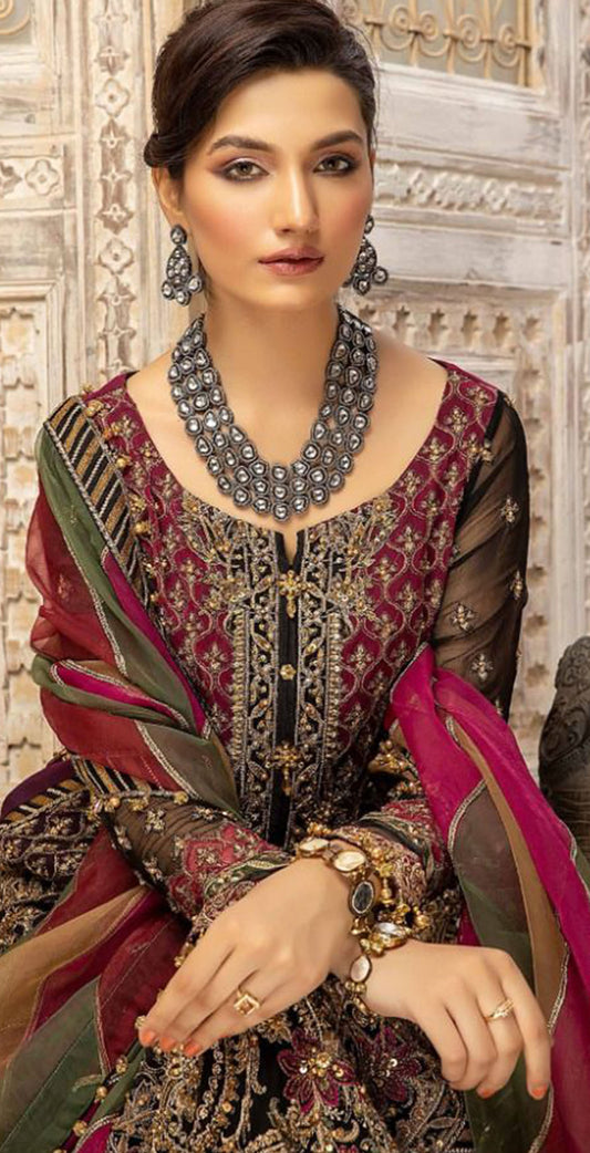 Magenta georgette embroidered and fully stitched salwar set Hiral